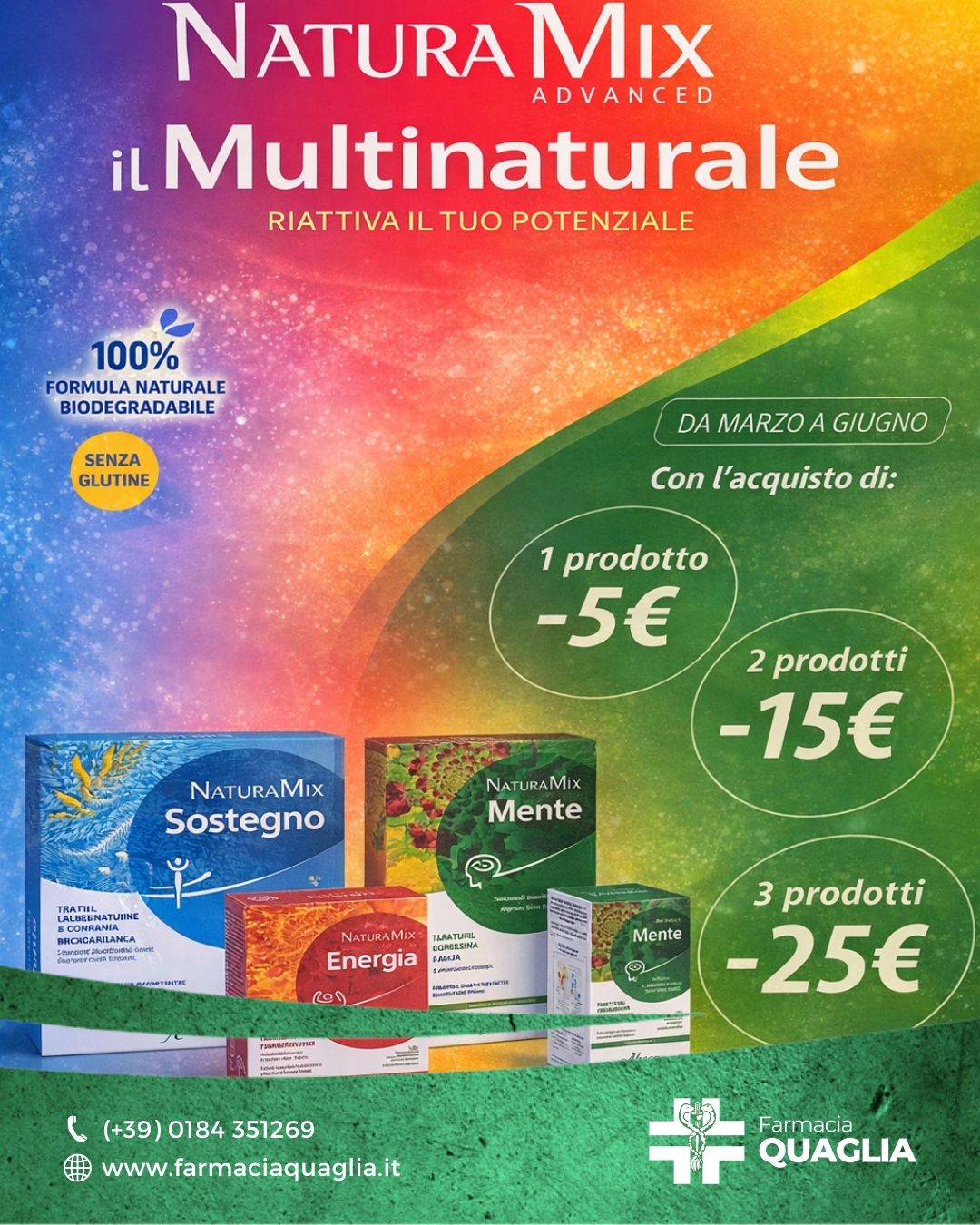 La Farmacia dr.ssa Anna Maria Quaglia a Ventimiglia offre un'ampia gamma di prodotti farmaceutici, per l'infanzia, sanitari, naturali, e per diete speciali, con un ottimo rapporto qualità-prezzo. Il nostro personale qualificato è sempre disponibile per consulenze e consigli nella scelta del farmaco più adatto. Visitateci con fiducia in via Cavour, Ventimiglia.